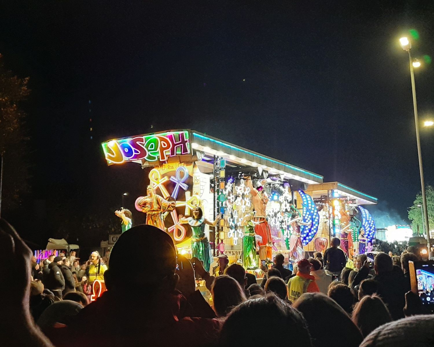 Fast forward to 2024 and a few interesting facts. The crowd is estimated to be between 120,000 and 150,000 people who line the 1.7mile procession route. The procession will take between 2 and 2.5 hours to pass any given point. Over 2000 performers will be either on the carts or will taking part as walking masquerade performers. The largest of the carts will measure 100ft in length and in total it is estimated that there will be a total of 500,000 lights in total.