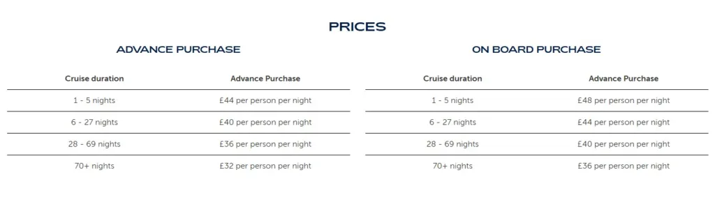 When you have entered your personal data compare the total daily cost with the prices below and see if it is worth buying the drinks package.