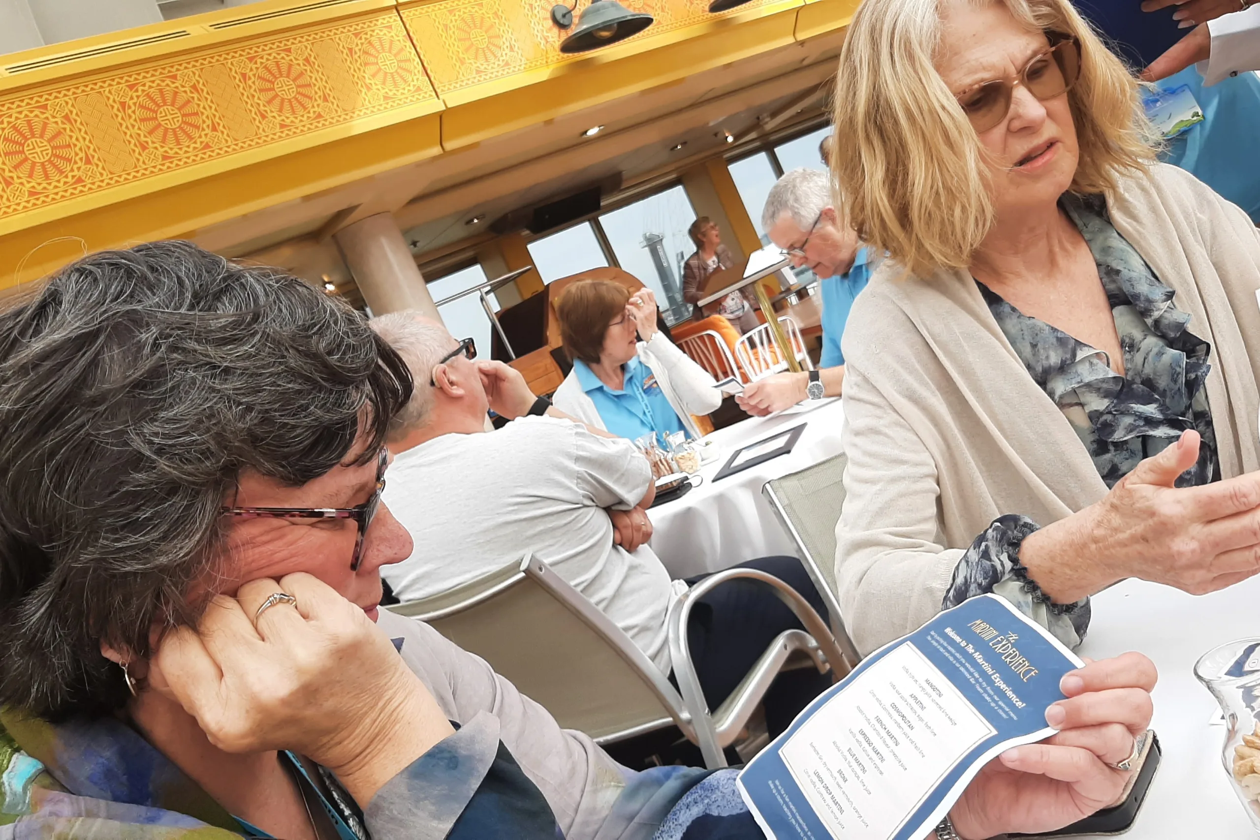 As part of our recent Group Cruise, we asked if anyone wished to take part in the onboard Martini Experience. A total of 39 booked it and Fred. Olsen Cruises kindly arranged for us to hold this as a private event.
