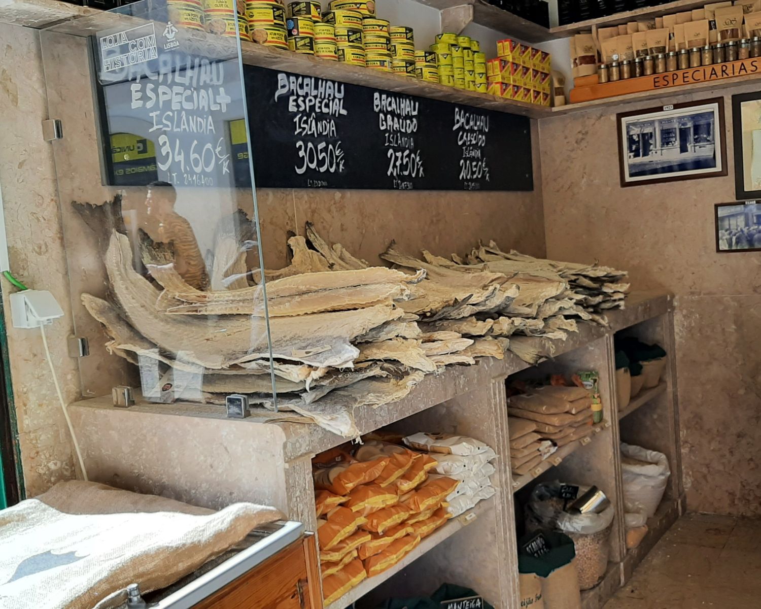 On to our second tasting. This was a short walk away from our starting point. We took a few minutes to get there but on the way Daniel pointed out some interesting aspects of the city. As we turned a corner Ken and I realised that we had been here before. Some years ago (pre-Covid times) we had taken a walking food tour that also took in this next stop. The store is called Bacalhoaria Silva and sells traditional Salt Cod and all sorts of local meats and wine.