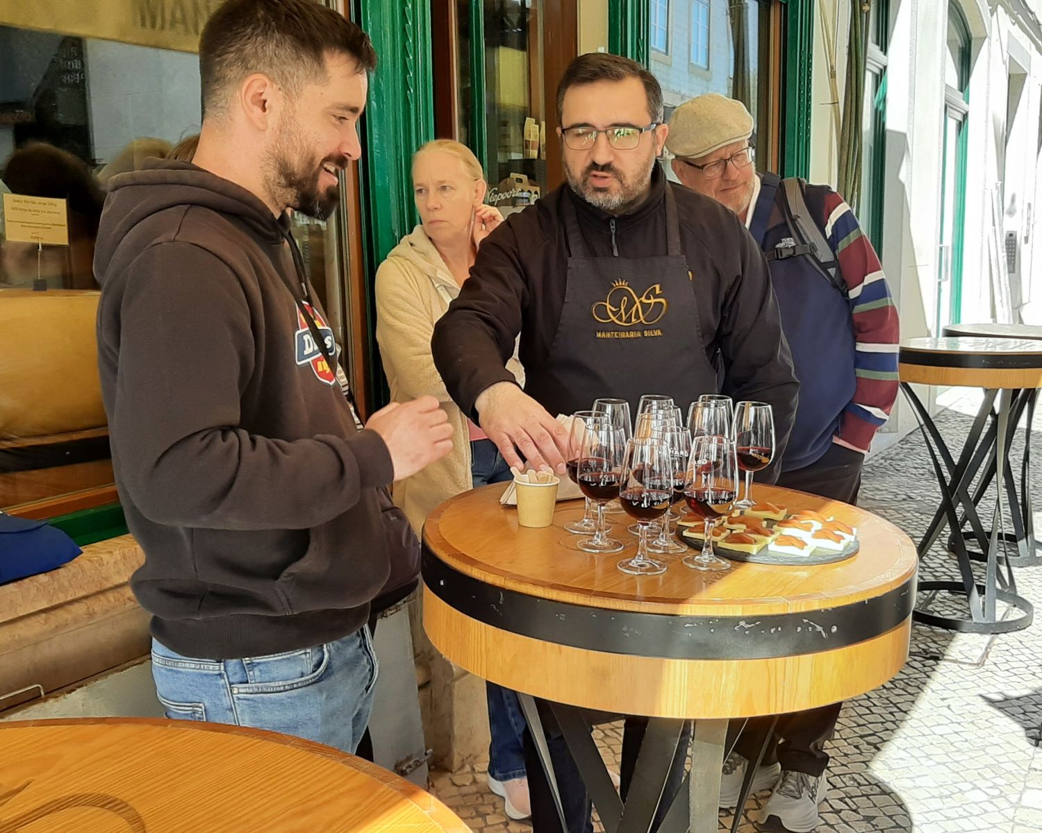 Our next tasting was a little of a surprise. We headed around the corner into another little square and were directed to the tiniest of bars. This was purely a standing bar serving our next drink, Ginjinha and the bar is where the tradition started. Ginjinha is a popular Portuguese liqueur made by infusing sour cherries (also known as Morello cherries) in alcohol (aguardente, which is a Portuguese Brandy), sugar, and sometimes cinnamon or cloves, resulting in a sweet and tart drink.