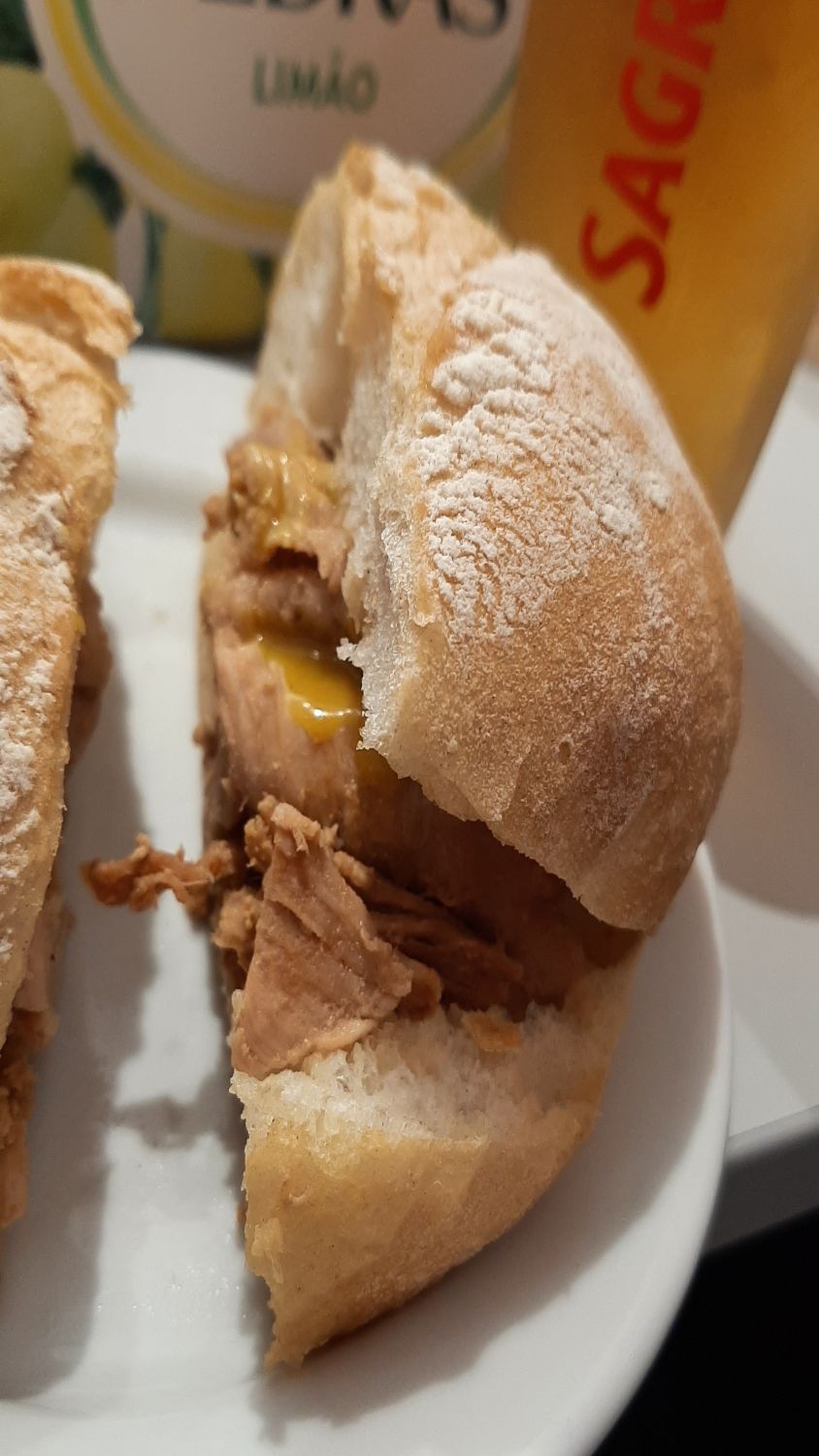 He led us through some of the local streets to our next stop. Again, a little bar but this time with seating. Our seats had been reserved and we all gratefully squeezed into the tiny spot. Here we were to have Bifana and a local Portuguese beer. And what is Bifana, well read on. Briefly it is a Portuguese sandwich made of thinly-sliced port, marinated in wine or beer, garlic and spices. It is then served in a bread roll either with mustard or home-made Piri Piri sauce (traditionally VERY hot). Together which a local beer, it went down a treat.