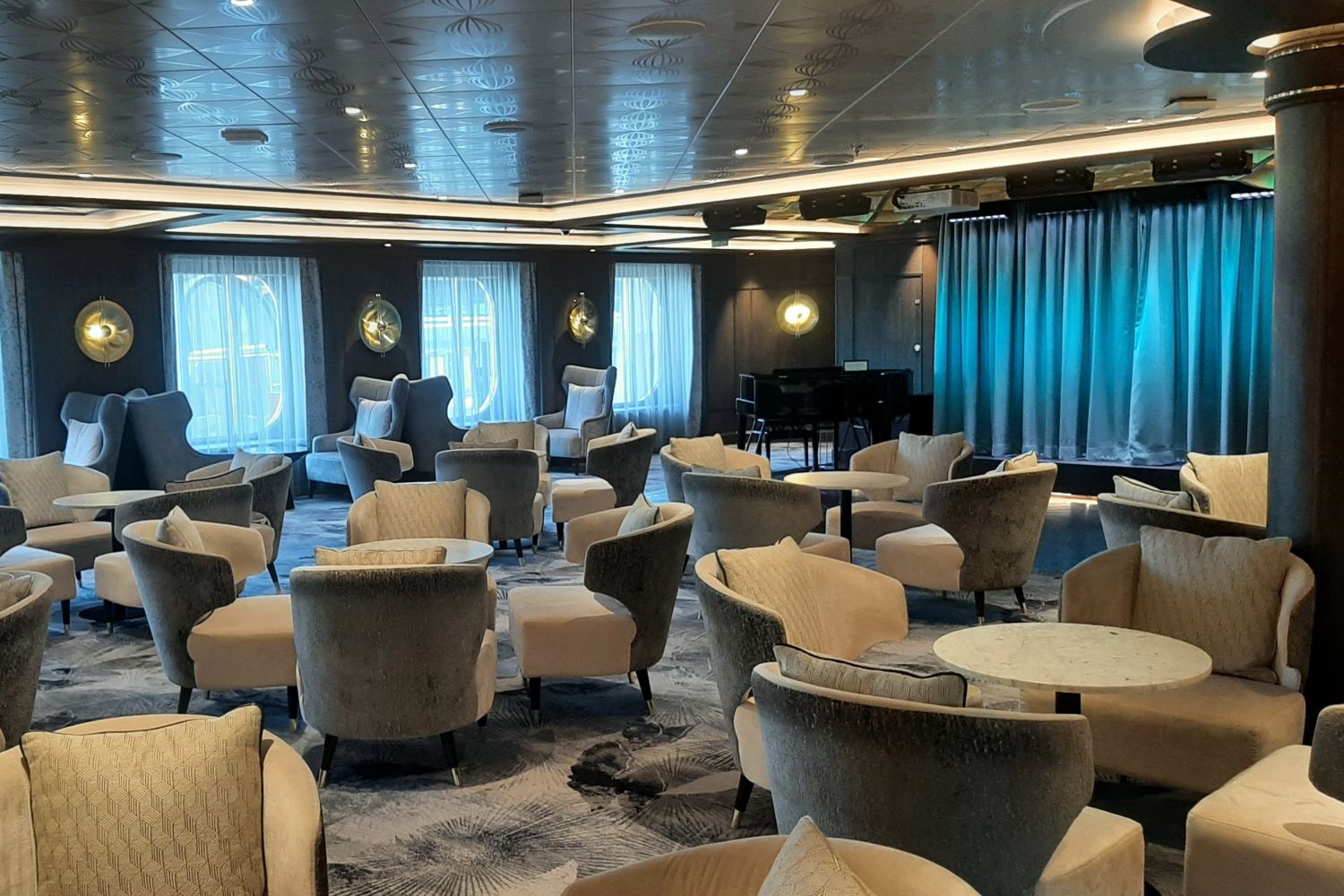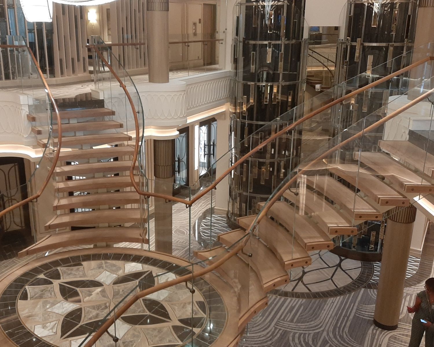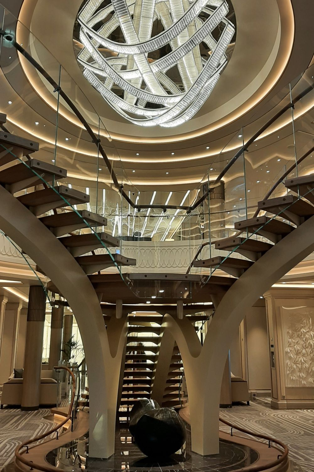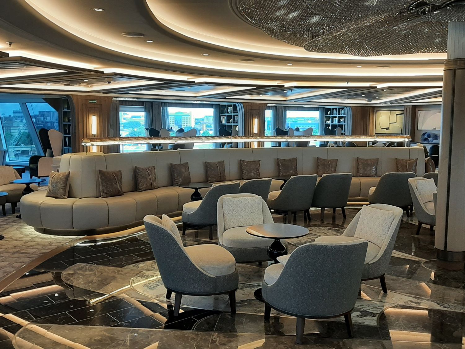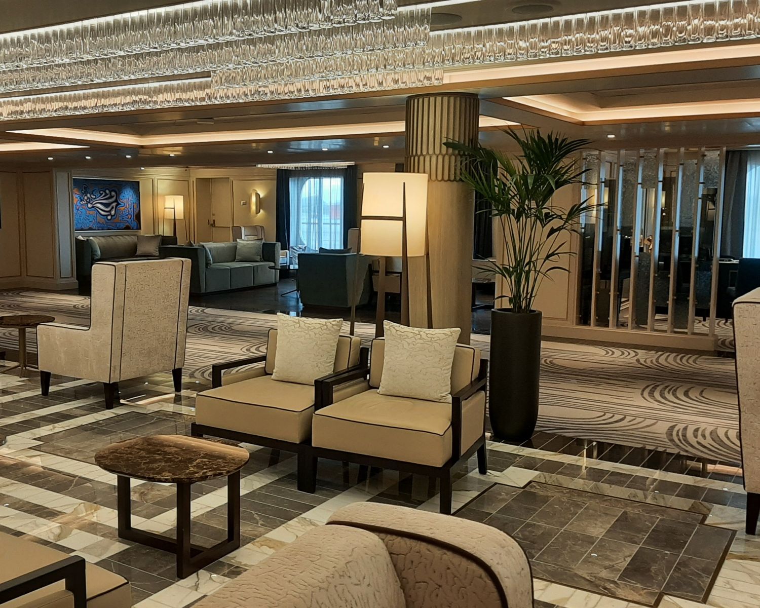 We arrived at the terminal to be met by our hosts James and Sasha and also David Sanders from Choose Cruise.  Formalities sorted quickly, it was through security and onto the gangway for our first view of the ship. From the moment we walked through the doors we knew we were in for a treat. Everything we could see shouted class, elegance and beauty.