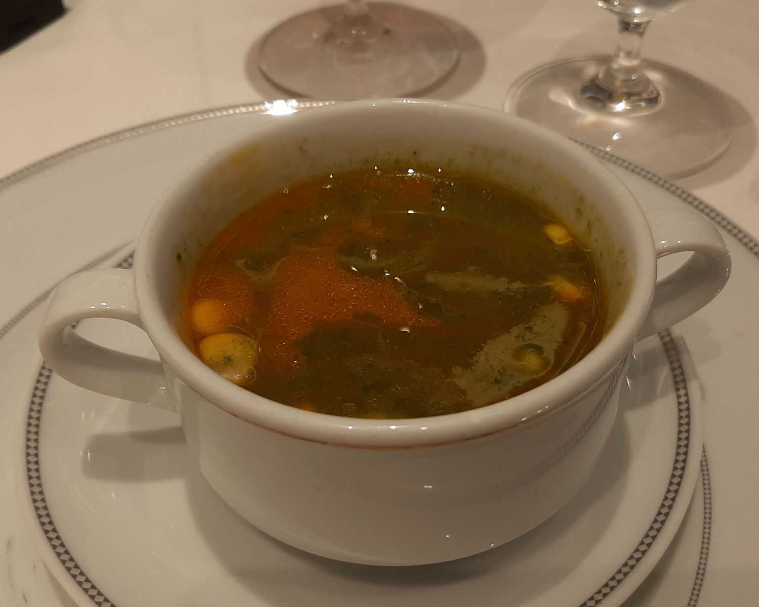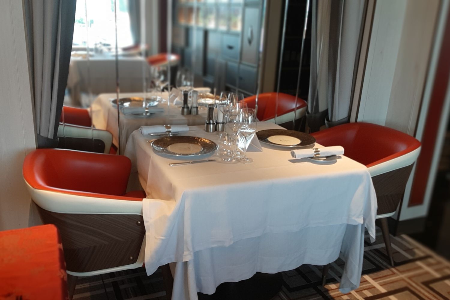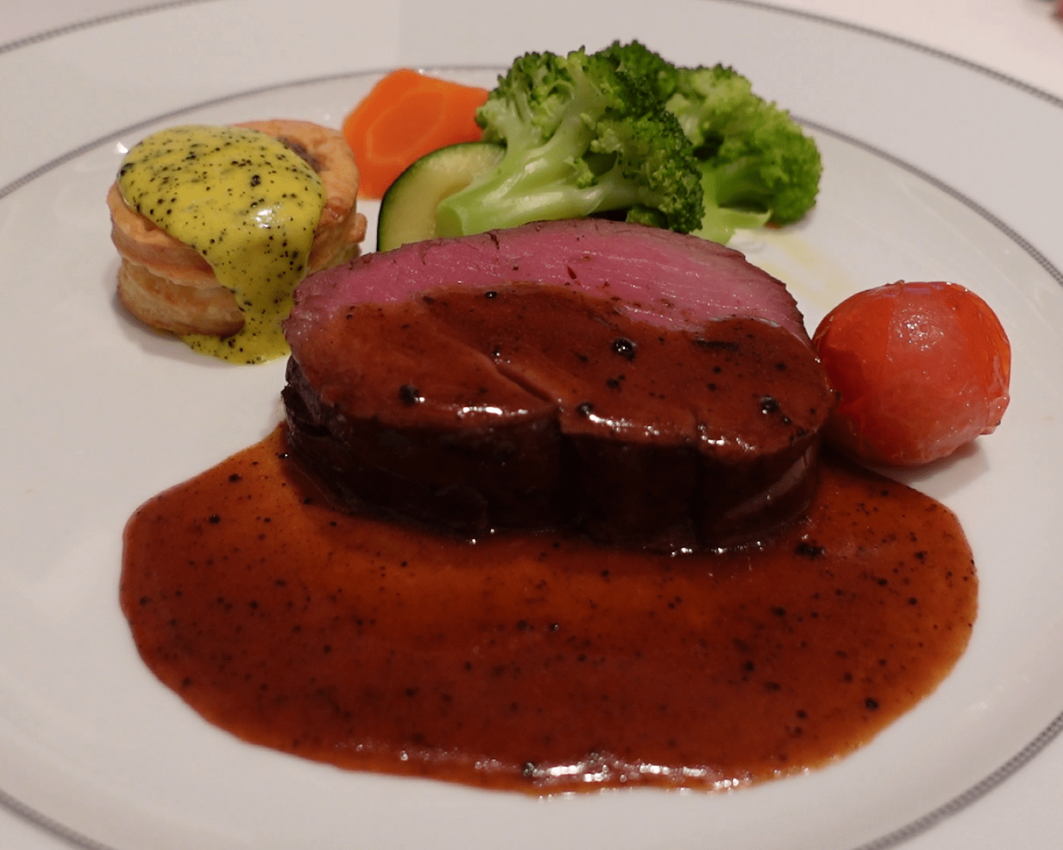 Compass Rose – this is the largest of the dining rooms on Seven Seas Grandeur and is where we were fortunate enough to have lunch. From the moment we entered the dining room we felt the elegant decadence. It truly has the `wow’ factor and left us almot open-mouthed at its beauty. The Visace designed tableware adds to the excitement of what is to come. Here you can design your very own entrée from preferred sides, sauces, pastas and main features of beef, poultry and fish.